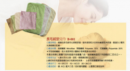 長毛絨潔膚嬰兒巾,特別採用美國Microban防霉抗菌處理雙面長毛絨組織;柔軟、細緻、觸感舒服真正可護您細緻肌膚,